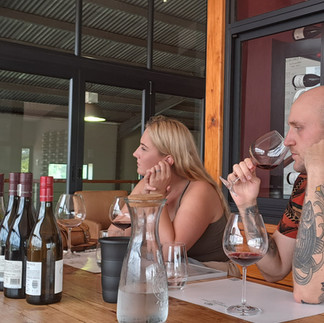 It was the Wallace family's busiest harvest day but Paul hosted a wonderful laid back tasting on the porch of a converted cottage tasting room whilst looking over the vineyards and beautiful dam. Paul has advised over 900 farms on viticulture and here at Wallovale Vineyards he can practice what he has advised. We were delighted to be greeted by Nicky, youngest winemaker son (Bobby), and two beautiful wine-farm-doggos too. The renowned Black Dog Malbec was named after their first legend, Jake, who passed away in 2018. Be sure to include this gem in your tasting selection!